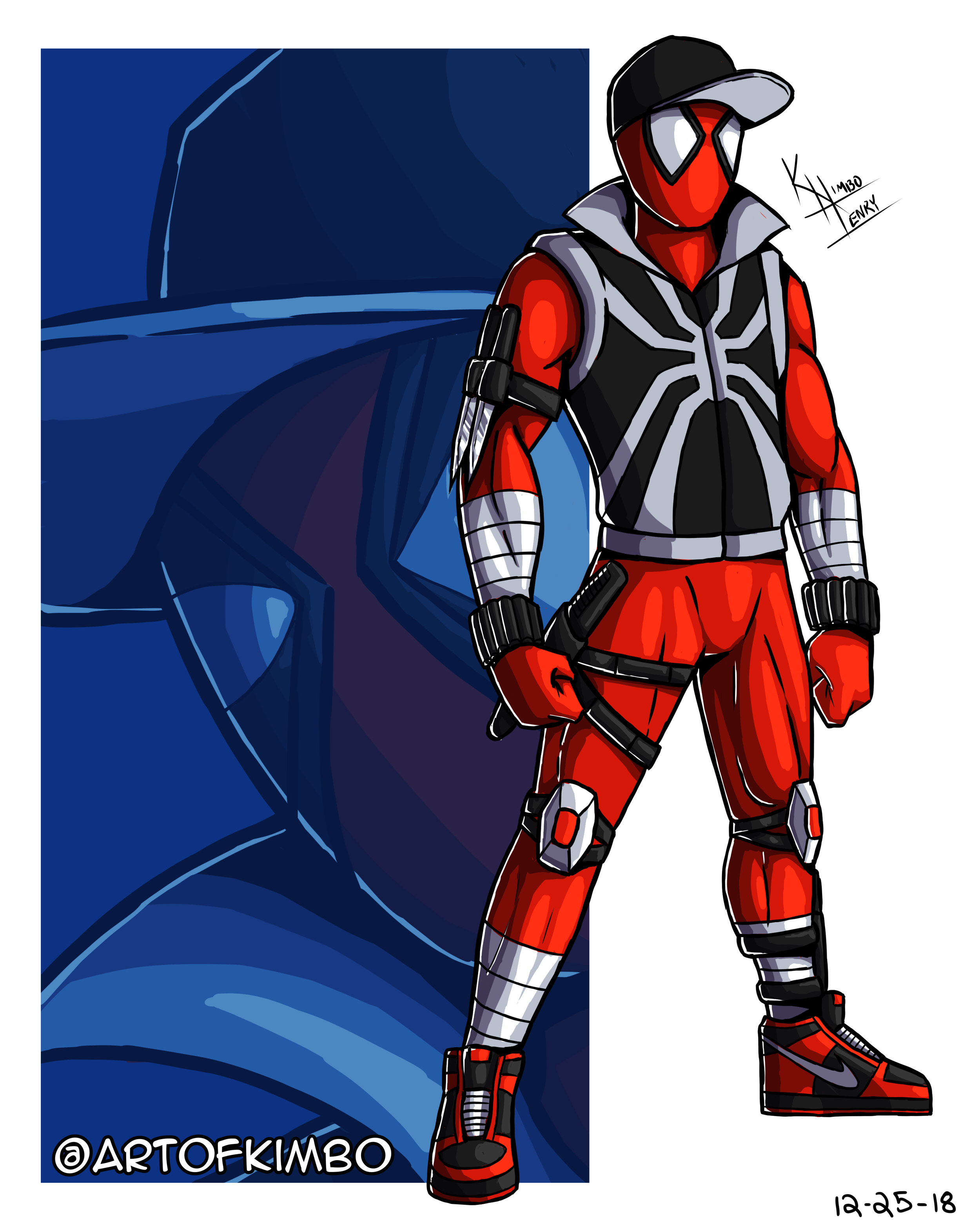 Around the release of the Into the Spider-Verse movie, there was a trend of having artists make their own “Spider-Sona” and this was mine. I’ve always been a fan of knives and knew that if I was a superhero of some kind, I’d probably use knives.